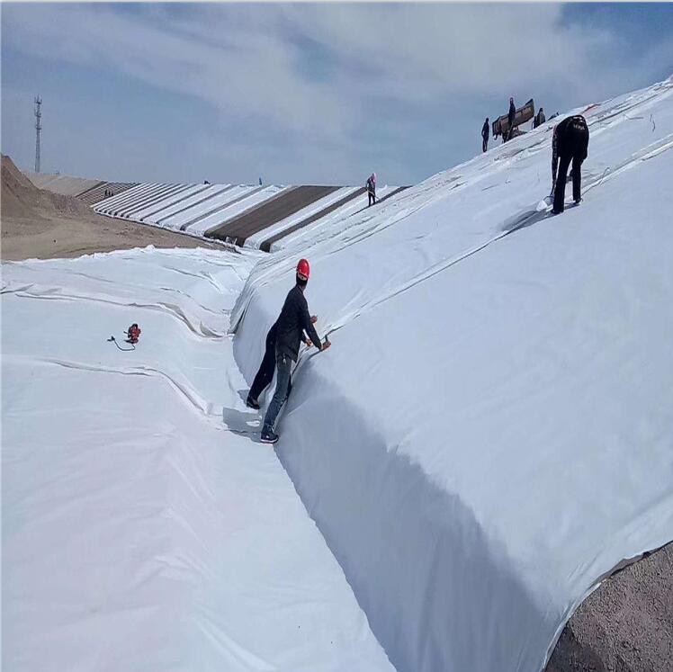 其次确定材料尺寸。由于市面上所销售的土工布尺寸都比较固定,所以在铺设的时候难免需要重新进行尺寸的裁剪确定。而在确定尺寸的时候有一点是需要引起注意的,那就是在尺寸确定后需要按照一定比例留宽。这样做的目的就是为了防止在铺设的过程中出现一些意外的情况,而且留宽在固定的时候也比较方便。